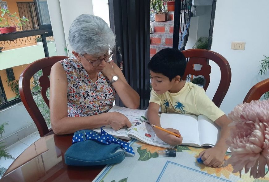 Doña Hilda es una docente natural, hace 24 años hace nivelación escolar de manera particular a niños(as) de primaria de su barrio. En estos años han pasado por su acompañamiento alrededor de 80 estudiantes cuyos padres de familia ven en ella un apoyo que necesario para ayudar a sus hijos(as) a superar los obstáculos escolares.
