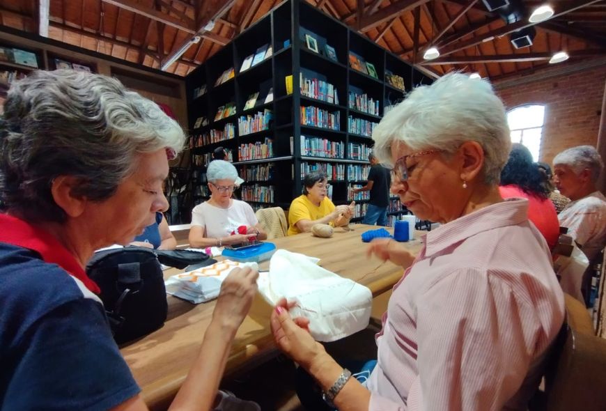 [2] El costurero de historias de la Biblioteca del Centro Cultural Comfama Aranjuez se reúne todos los jueves de 2:00 p. m. a 4:00 p. m.