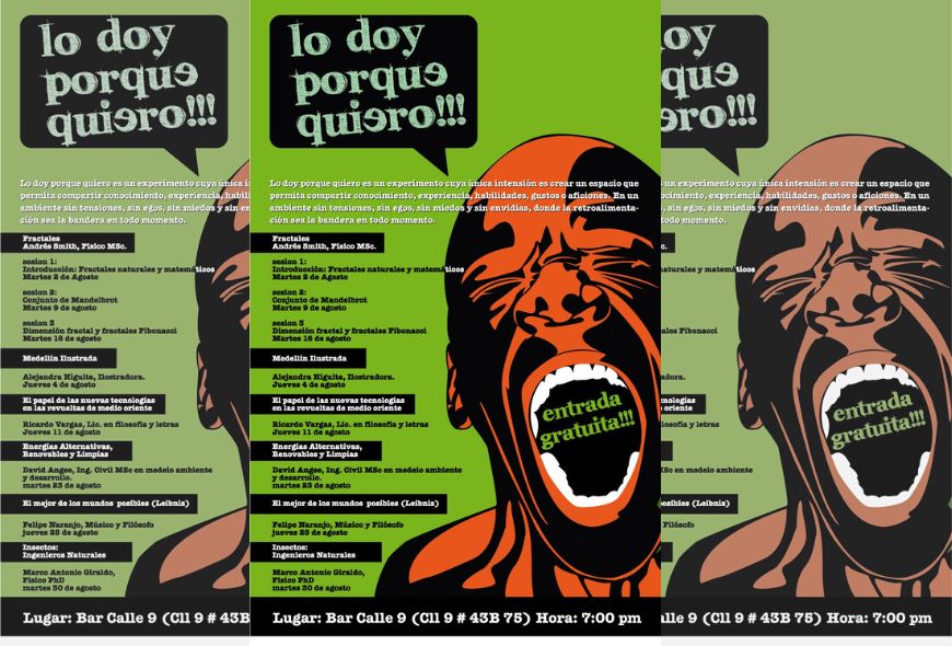 De docente de cátedra pasé a crear un evento para compartir conocimiento sin esperar nada a cambio que lleva más de 10 años y se ha expandido a otras ciudades. Cuando cursaba la maestría en física, que era de tiempo completa, se me hizo imperativo buscar un trabajo para conseguir mi independencia económica. Empecé entonces una carrera como docente. Me gustó tanto y estaba tan preocupado con lo que veía y había vivido que leía todo lo que me encontraba al respecto, trataba de hacer una clase diferente y de mostrarle a los estudiantes un mundo más allá de la materia y la universidad. Me interesé tanto por el tema que creé Lo doy porque quiero, un espacio educativo independiente en el que se comparte conocimiento y se critican las formas tradicionales de relacionarse con él. Después de 11 años hemos realizado más de 600 conferencias, liberamos el formato para que se pudiera realizar en otras ciudades de Colombia y ahora andamos tratando de hacer podcasts.