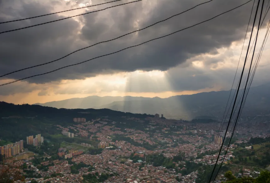 Hay ciudades donde uno no puede ver más allá de los edificios que tiene al frente. Medellín es todo lo contrario, se te muestra casi completa donde quiera que estés. El que no muestra no vende, parece decir y Medellín quiere que la desees. Tomás Carrasquilla, en su novela Frutos de mi tierra, describió con una metáfora certera ese valle sobre el que se acuesta la ciudad: "El Aburrá, perezoso, ondulante, aquí angosto, desparramado allá, interceptado á trechos por los cañaverales y sembrados, se ve desde la falda, bien así como retorcidos recortes de hojalata". Esta última frase devela su filo peligroso y seductor, tanto como otro de los versos del mismo poema de José Manuel Arango arriba mencionado que ve en las montañas que rodean la ciudad "el borde de una copa quebrada".