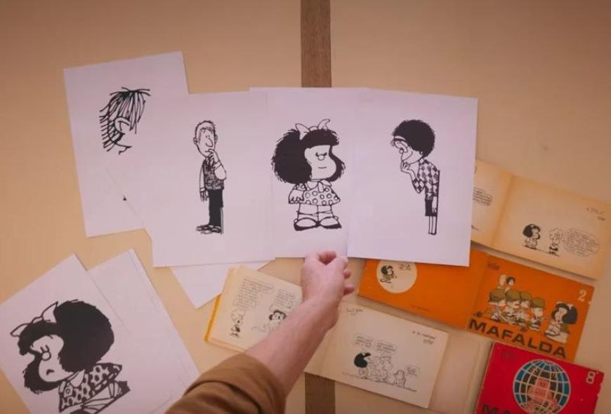 Todas estas ideas, la forma y el entusiasmo sobre los archivos, las recuerdo ahora luego de ver la serie documental Releyendo a Mafalda, de la directora y guionista argentina Lorena Muñoz. Un documental que agregué a mi lista personal por varias razones, a pesar de que no soy un lector fanático y coleccionista de Mafalda. En este caso, como un asunto técnico y de organización narrativa, la base del audiovisual está explícita en el título; que no es tanto la lectura de las tiras de Joaquín Salvador Lavado Tejón (Quino) sino la relectura de Mafalda, desde su origen y las ideas preliminares de la tira, pasando por la transformación de la línea y el estilo Quino en el marco y contexto de sus primeras publicaciones, hasta su vigencia en la cultura latinoamericana. Una relectura, a través del audiovisual, que nos permite entender las viejas impresiones y las nuevas impresiones. El repaso que se hace en la serie, gracias a la reproducción e investigación de archivo, se construye a través de opiniones y comentarios de dibujantes: Liniers, Maitena, Tute, Rep e investigadores, escritores y personajes de otras disciplinas, prescindiendo con esta decisión narrativa de un narrador externo, que cuenta y expone lo que se muestra, porque el flujo informativo está soportado por las lecturas de los invitados.