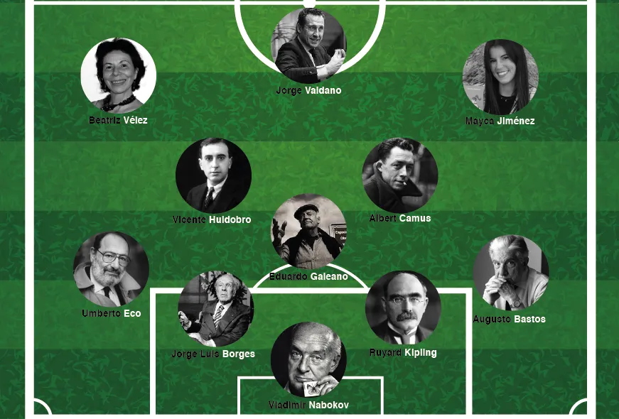 La formación sería una 4-3-3. De arquero pondría a Vladimir Nabokov, que llegó a ser golero de equipos amateurs en Rusia. Los centrales serían Jorge Luis Borges y Rudyard Kipling, dos de los escritores que más rajaron del fútbol, entonces los podría ahí para defender sus posturas, de laterales irían Augusto Roa Bastos (derecho) y Umberto Eco (izquierdo). En el mediocampo está toda la magia del equipo, de volante de recuperación está Eduardo Galeano, y como volantes creativos estaría Vicente Huidobro y Albert Camus, que también llegó a jugar fútbol. Y arriba, los tres delanteros serían como puntera por la izquierda Beatriz Vélez generando profundidad, por la derecha Mayca Jiménez, y como centro delantero el ex futbolista del Real Madrid y escritor Jorge Valdano.