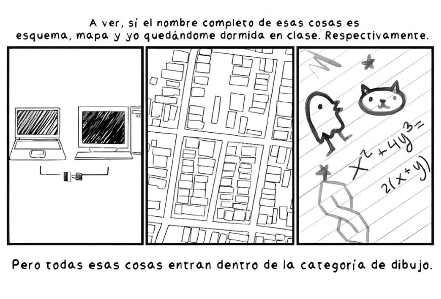 Y en la segunda cuestión, la pregunta por el dibujo ponía en el centro una tecnología que precede a la escritura, y a la cual renunciamos, la gran mayoría, de forma progresiva desde los primeros años de vida hasta la castrante adultez. Un problema a discutir con aquellos que se resisten a dibujar o le restan importancia a leer con imágenes. Pensar con dibujos, el dibujo, puede ser una forma de resumir o de responder a la pregunta en la que se instala este libro, pero eso dejaría por fuera otras consideraciones que usó para armar su aparato argumentativo, y que sostienen la mediación entre teorías, ejemplos y juegos gráficos.