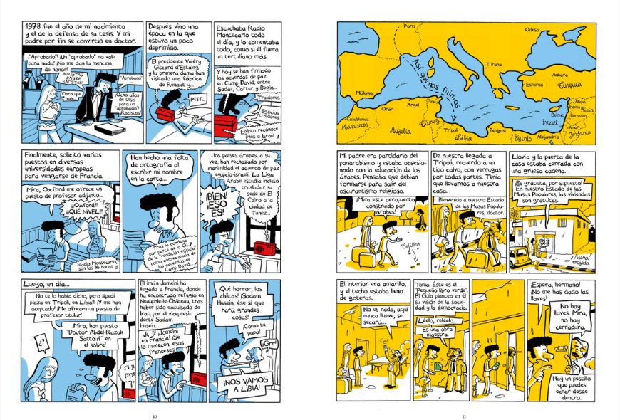 Con un formato sencillo, y sin especular con riegos de composición y experimentaciones gráficas, Sattouf recrea en el primer número de la serie: Una juventud en Oriente Medio (1978-1984) lo que vivió en el reconocimiento y adaptación a un nuevo mundo, el cual se abrió por el deseo de retorno de su padre (Abdel- Razak): un obsesivo fanático del Panarabismo que impulsó a su esposa e hijo a vivir en Libia y en Siria. Lo que es un sueño y regreso para Abdel es en cambio un viaje, por momentos difícil y cruel hacia otro mundo para Riad niño, quien de la mano y siguiendo la versión y guía de su padre, se va integrando, como puede, a su nueva vida.