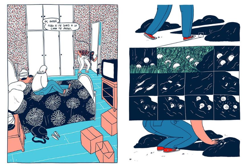 En esta historieta sobre la memoria, entonces, la casa es el espacio central, una caja de recuerdos que se despliega de muchas formas, al tiempo que se va contando cómo la habitó una familia de migrantes en la Argentina luego de ser expulsados por la llegada del fascismo en los años veinte a Italia. Un lugar de memoria que se articula al modo de vivir en el presente y las fluctuaciones con el pasado, en una superposición de momentos que se filtran de un lado a otro en las páginas del libro.
