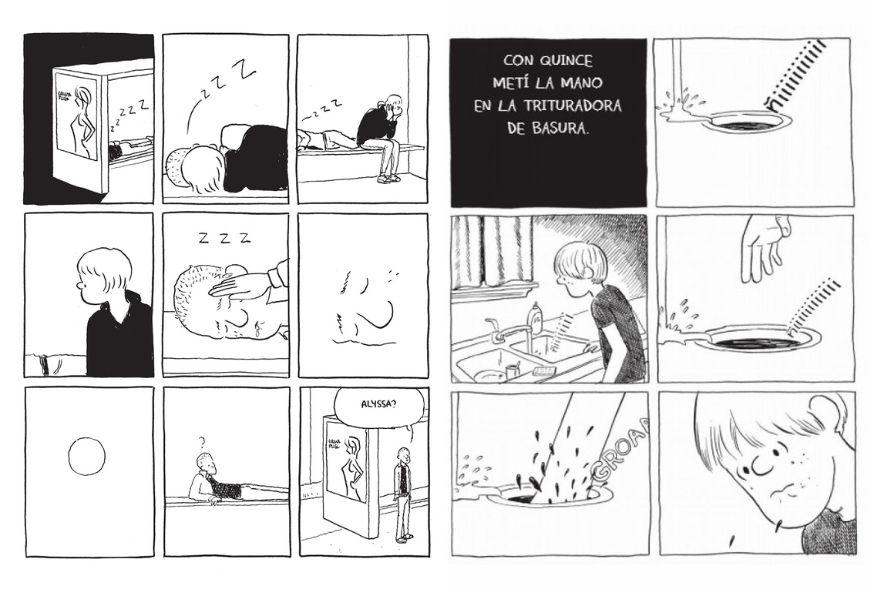 A pesar del escape y las acciones que determinan a James y Alyssa el tiempo en The End of the Fucking World es un tiempo quieto, por momentos muerto, y lo que parece avanzar como escenario de fondo en las vidas de los adolescentes que deambulan, solo es un paisaje estancado, al igual que todo lo que sucede con ellos. En este ambiente, sin mucha pirotecnia, la contemplación y la mirada que inserta la voz de los personajes es una grieta en lo dibujado, que de a poco va tomándose el lugar de las acciones violentas con una poética que flota y persiste, a pesar del mal ambiente en las páginas. Es así como en cada capítulo, la voz narrativa de James y Alyssa, lo que ellos dicen, lo que observan y nos muestran, fuera de los diálogos, ocupa los espacios para decirnos y recordarnos que el no futuro de ellos, y tal vez el del nosotros, son parte de un mismo programa, uno que se hace cada vez más lento y cancelado por el flujo constante del cansancio, la depresión, la ansiedad, la desconexión y la bruma de las enfermedades mentales en este nuevo fin del mundo.