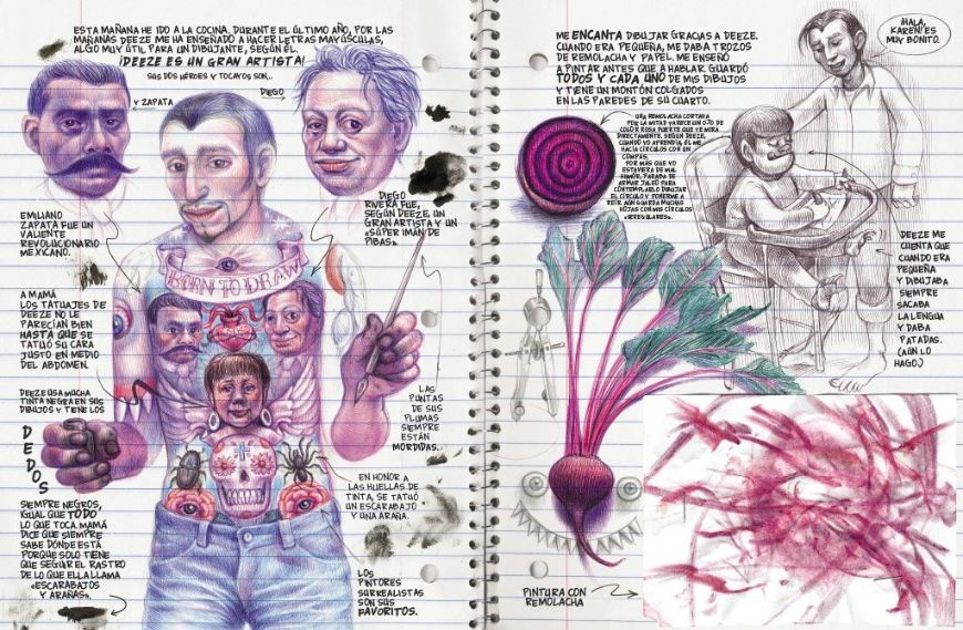 El álbum, que es la primera parte de la entrega, se impone por su gran formato y los materiales que usó Ferris para recrearlo: lápiz, plumines y lapiceros de colores que le aportan un resultado análogo a la superficie de hojas de cuaderno del libro. Este resultado final, que nos recuerda a la presencia material de algunos libros de Lynda Barry como su esencial Syllabus: Notes from an Accidental Professor (Drawn & Quarterly 2014) o Making Comics (Drawn & Quarterly 2019) recrea el diario de Karen Reyes: una niña lobo, lesbiana e hija de inmigrantes mexicanos.