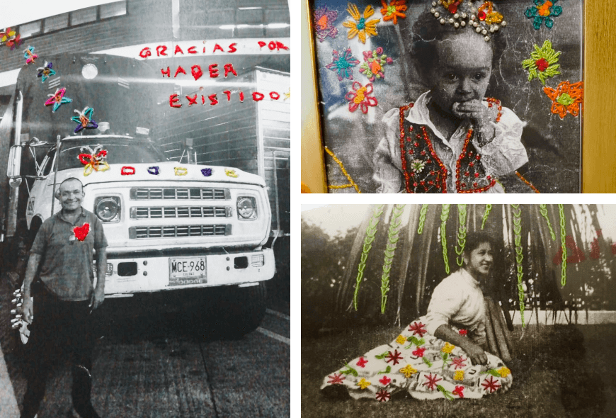 De la memoria y las palabras pasamos a la imagen. En el ciclo “Fotobordados”, las mesas se llenaron de fotografías. Algunas estaban dobladas en los bordes, otras casi descoloridas. Beatriz trajo una foto en blanco y negro de su mamá con una falda floreada. Mientras cosía, decía: “Ella me enseñó todo lo que sé de las artes, por eso quiero que su vestido tenga los colores que recuerdo”. En ese momento, Beatriz le devolvió el color a la memoria: hizo de un instante detenido en el tiempo un recuerdo vivo. Las fotos se transformaron en objetos de afecto, en un intento de reconciliarnos con lo que fue a través del hilo.