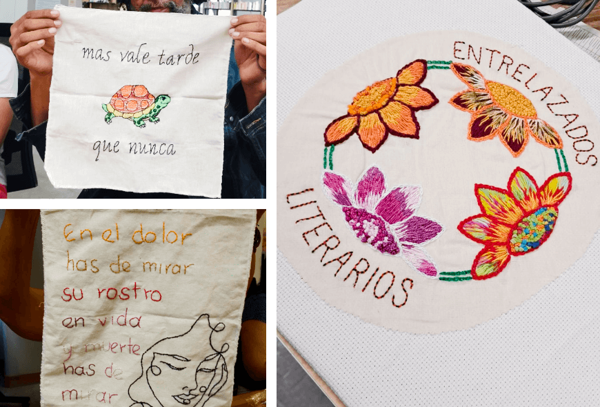 Con el tiempo, los bordados se convirtieron en una conversación colectiva. No siempre hablamos; a veces bastaba con escuchar el roce de las telas, el sonido del hilo que atraviesa. En esas pausas entendimos que la literatura y el bordado comparten algo esencial: ambas nos devuelven al cuerpo, nos enseñan a mirar despacio, a estar presentes.