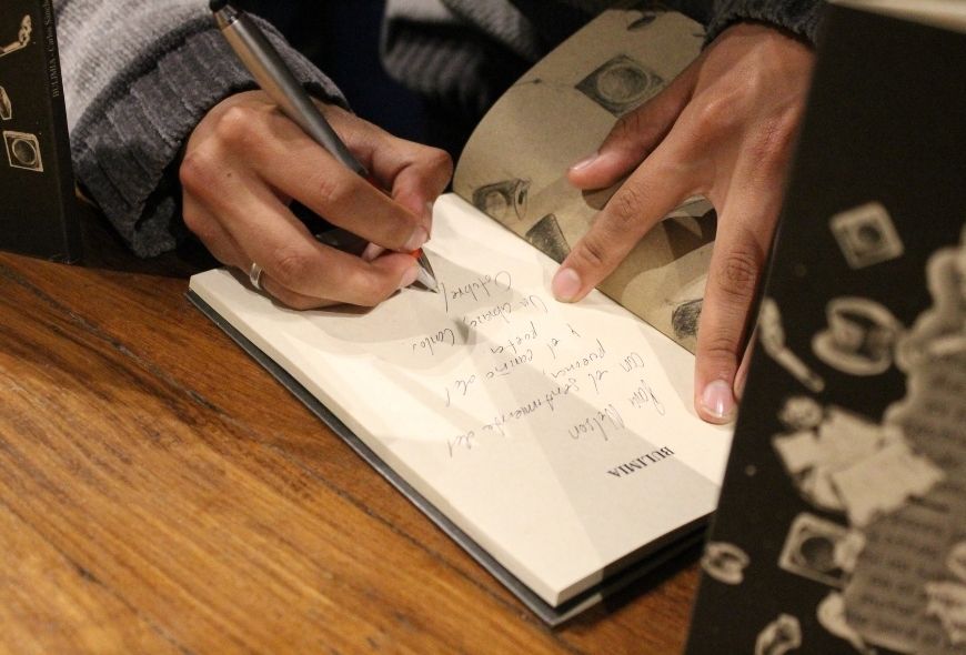 Su escritura es muy orgánica, muy espontánea. A veces le llega un verso, unas el final de la historia, otras el poema completo: “Lo escribo entero y ya después lo reviso, miro qué fue lo que escribí y realizo unos ajustes mínimos sin intentar cambiar mucho esa esencia de la primera versión”. En el taller de escritura surgió una convocatoria para publicar, y motivado por Arbey Salazar, promotor de lectura de nuestras bibliotecas, decidió recopilar algunos de esos poemas que había escrito, editarlos, organizarlos y en el 2019 presentar un libro, su primer libro.