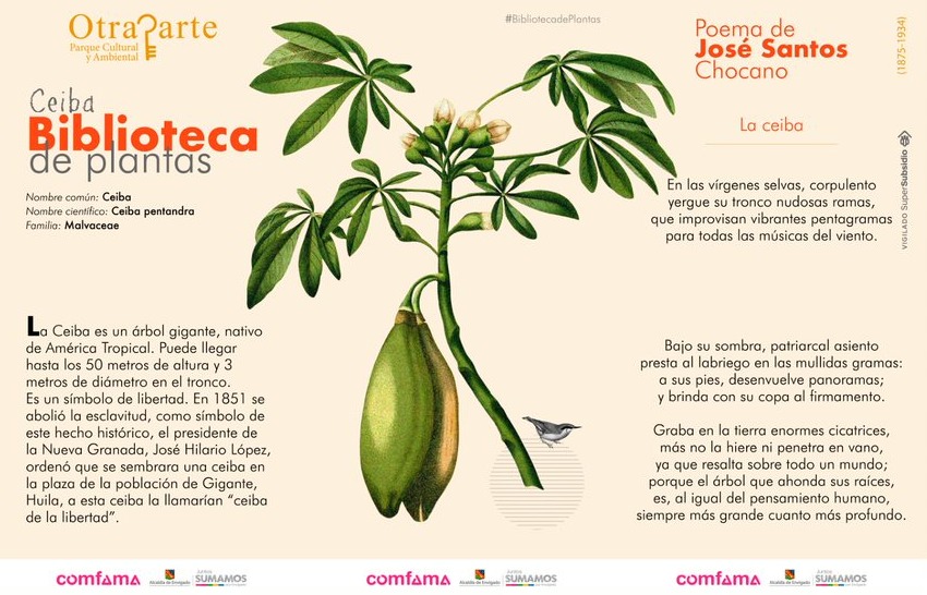 Por eso, partiendo del legado de pensador antioqueño, el Parque comenzó a construir desde abril de 2020 una biblioteca cuyos libros son plantas colombianas, esas que curan los males, alimentan el cuerpo, bendicen las ceremonias y multiplican la vida embelleciéndola. Juan Pablo Franco, historiador de la Universidad Nacional y facilitador de nuestra biblioteca, impulsa diversas iniciativas que vinculan la biodiversidad del país con la literatura.
