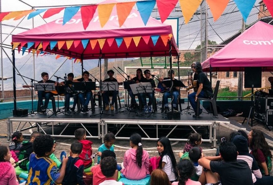 “La zona Nororiental de Medellín es un ejemplo para toda la ciudad. Hace algunos años, cuando teníamos crisis de violencia y había unas fronteras invisibles que no podríamos cruzar, surgieron unas organizaciones de teatro, de danza, de música que rompieron con esas barreras y cruzaron de un barrio a otro bailando, pitando, brincando, diciéndoles a los violentos que eran imparables”, relata Sebastián con el convencimiento de que la ciudad entera debe aprender de estas historias de valentía y resignificación.