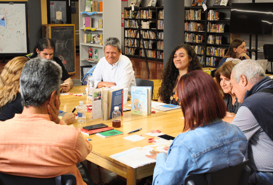 Con ella llegué a otro lugar de la biblioteca donde me esperaban los integrantes de su club de lectura, un grupo de personas de distintas disciplinas. Con ellos conversamos de mis libros, compartí apartes de mi obra, por ejemplo, del libro No soy un gánster, soy un promotor de lectura, les leí un apartado que contenía el siguiente fragmento: