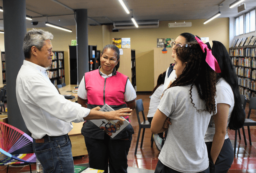 Resulta que en Comfama fui invitado como escritor al programa Bibliotecario por un día, es decir que por un día ejercí a plenitud el oficio más generoso del mundo. Llegué temprano a un edificio, en la ciudad de Itagüí, rodeado por calles en reconstrucción: una isla en un bosque de trabajadores, picos, palas, máquinas, huecos y montañas de arena. Al ingresar, en la medida que ascendía por unas amplias escalas, me topé con aulas y alumnos, una piscina bulliciosa, un gimnasio con máquinas de ensueño, cafeterías, y niños y adultos de todas las formas, tonalidades y tamaños, un espectáculo fascinante aislado de la ciudad nerviosa.