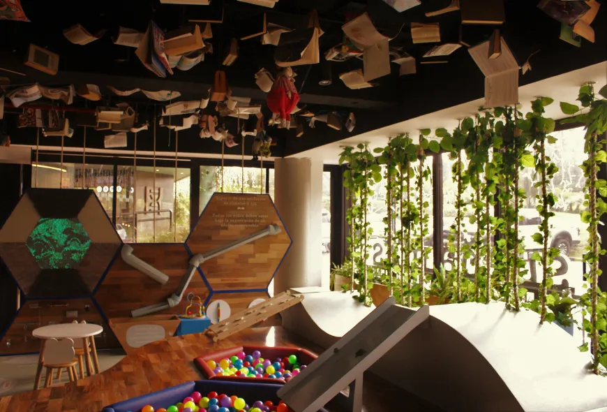 Aparte del espacio de la librería, cuenta con un café y una zona infantil con juegos y libros colgados al techo, y una agenda cultural semanal con horas del cuento los domingos y miércoles. En el segundo piso está el salón 9 ¾ que se alquila para eventos y se dan clases semanales de programación para niños. Es un espacio donde la literatura juega, donde las palabras toman formas y se impregnan en las paredes; aquí las imágenes también narran. Por esto, en su catálogo destaca tanto los libros infantiles como colecciones especiales y libros ilustrados. Hay una preocupación por la forma, por tener libros bonitos, por tener ediciones que no sean tan comunes. Sin embargo, hay variedad también para todos los gustos. Camilo nos cuenta que: