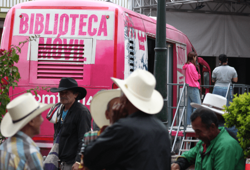 Con la biblioteca móvil andamos los territorios de Antioquia, los urbanos y los rurales, enriqueciendo las conversaciones, creando nuevos relatos, estimulando la curiosidad, construyendo con otros nuevas posibilidades de conocimiento desde la conexión de los múltiples saberes, lenguajes y públicos, se da paso a la confianza, al acercamiento de la información, facilitando el acceso a la misma, fomentando el aprendizaje y siendo partícipea de las culturas de los pueblos antioqueños.