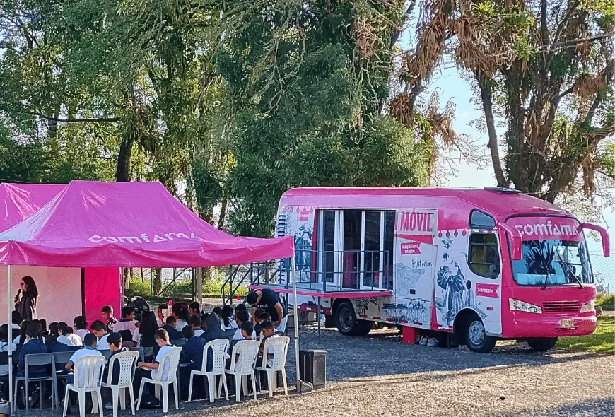 LEERDesde las bibliotecas Comfama estamos convencidos de que la palabra, los múltiples lenguajes y expresiones tales como el teatro, el cine, la ciencia, la literatura, conectan intereses, personas y espacios. Es por este motivo que existe la biblioteca móvil, aquella que proporciona el acceso a los servicios bibliotecarios sin límites de distancia, que tiende puentes entre las comunidades y las múltiples culturas que se encuentran en cada territorio y las conecta desde la experiencia.