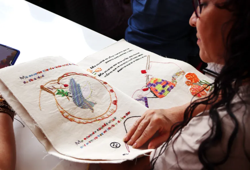 ¿Cuánto tiempo toma bordar un libro? ¿Cómo se construye la historia contenida en él? Estas fueron algunas de las preguntas que hilaron la conversación en la que encontramos historias de lucha contra la violencia de género, la violencia económica y la perpetuada por el conflicto armado en Colombia.