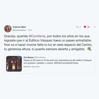 Y así, justo así, Comfama se despide del edificio Vásquez con gratitud. Que sus ventanas y puertas sigan abiertas porque el patrimonio es de todos.
