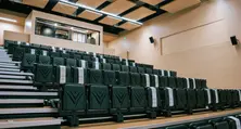 El interior de ese teatro diseñado por constructores de barcos, tiene un trabajo en madera increíble. Cuando teníamos el sueño de este proyecto planteábamos ese volumen inclinado, donde en su interior estaba la caja de madera, por un lado, del teatro y por el otro de la biblioteca.