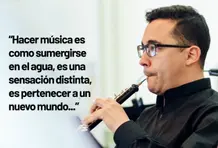 “Además de emocionar, el papel de la música es unir. Hacer música es como sumergirse en el agua, es una sensación distinta, es pertenecer a un nuevo mundo…Lo que se plasma en la partitura me llega directo al corazón; es decir, si debo expresar tristeza, alegría u otro estado de ánimo, trato de contagiarme de todo esto para poderlo transmitir con música. Si uno no se apropia de lo que quiere expresar, la audiencia no lo va a entender” Juan Fernando Muñoz, oboísta.