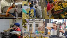 Entrada: Empanadas y papas rellenas. Preparación tradicional de las cocinas antioqueñas que, desde su comercialización, posibilitó la construcción de lugares de bienestar común. También es usual en fiestas tradicionales y sustento de economías familiares.