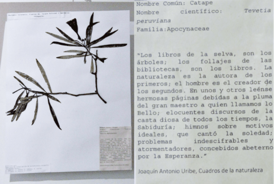 El primer resultado de sus sesiones de aprendizaje es el Herbario literario, una reunión de plantas que se toman del jardín de Otraparte acompañadas de fragmentos de textos sobre la naturaleza.