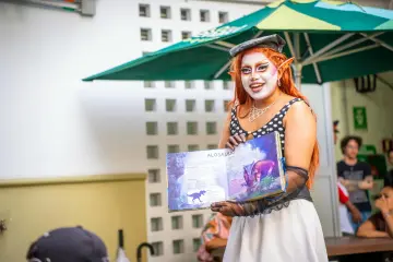 Mientras acompañaba a Andrés en su transformación a Andy Geek, pude apreciar de primera mano la complejidad y el tiempo que invierte en la construcción de este personaje. Mientras se preparaba meticulosamente con su maquillaje, tuvimos la oportunidad de conversar sobre el proceso creativo. Andrés compartió que, aunque muchos lo invitaban a realizar su performance, pocas personas comprendían verdaderamente el profundo trasfondo del proceso para lograr el personaje que encarna.