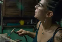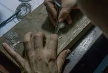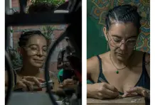 El frente del taller de joyería de Carolina Vélez está arropado por un curazao florecido que hace las veces de umbral al cuartito mágico que es su tienda y taller. Lugar de alquimia y plata al rojo vivo. Un día me encuentro allí con Sara y Lisandro del Colectivo Cinelatura con la intención de hacer una práctica de fotografía con la esencia de Carolina, quien nos abrió su taller y nos brindó café, té y cerveza, y hasta nos permitió acercarnos lo más que podíamos con nuestros lentes a retratar el fuego calentando el metal mientras era manipulado por sus manos con detalle y habilidad. Pequeñísimo hilos y otras figuras se unían uno tras otro formando una ornamentada roseta de caracol, donde cada corrosquito del metal hacía parte de un patrón, que a la vez obedecía a otros, hasta formar una delicada pieza de invaluable detalle y armonía. Plantas, flores, animales y algunas formas geométricas hacen parte de diseños orgánicos que Carolina elabora, tejiendo a la vez una tradición ribereña que viaja desde Mompox por dos grandes ríos de Colombia, Magdalena y Cauca, desde hace muchos años atrás.