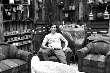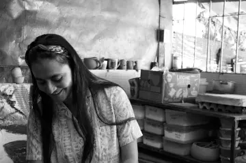 Me invitó a pasar a otro espacio del centro cultural en el que tiene un juego de sala al aire libre entre el verde exuberante de suculentas y chefleras, y los colores tierra y ocre de materos y piezas de barro hechas en su taller de cerámica. Nos sentamos allí y conversamos un rato. Me contó acerca de sus orígenes en San Francisco, una pequeña ciudad en la Provincia de Córdoba; sobre su interés desde pequeño por las artes marciales y las plantas, de su pasión por los viajes, por el rock, de los países que ha visitado en Latinoamérica, de sus aprendizajes en hostelería, barismo y mecánica y, con especial detalle, de su paso por Bolivia, donde conoció a su pareja, Maira Montoya, artista plástica, con quien lleva un poco más de siete años y el principal motivo de su decisión de quedarse en Medellín.