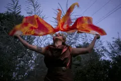 Diana es serena y tranquila hasta que empieza a bailar; cuando lo hace se concentra y poco a poco se transforma. Mueve su cuerpo e hipnotiza al espectador como una Loie Fuller, la bailarina, actriz y productora estadounidense que transformó la danza a finales del siglo XIX, pero para que su talento fuera valorado y reconocido tuvo que emigrar a Europa. El movimiento de sus inmensos vestidos de gasa o tul combinados con muchas luces de colores fue la fantasía del público de la época. Al igual que Loie, Diana, desde La Ceja, invita a nuevas maneras de ver, sentir y hacer las cosas.