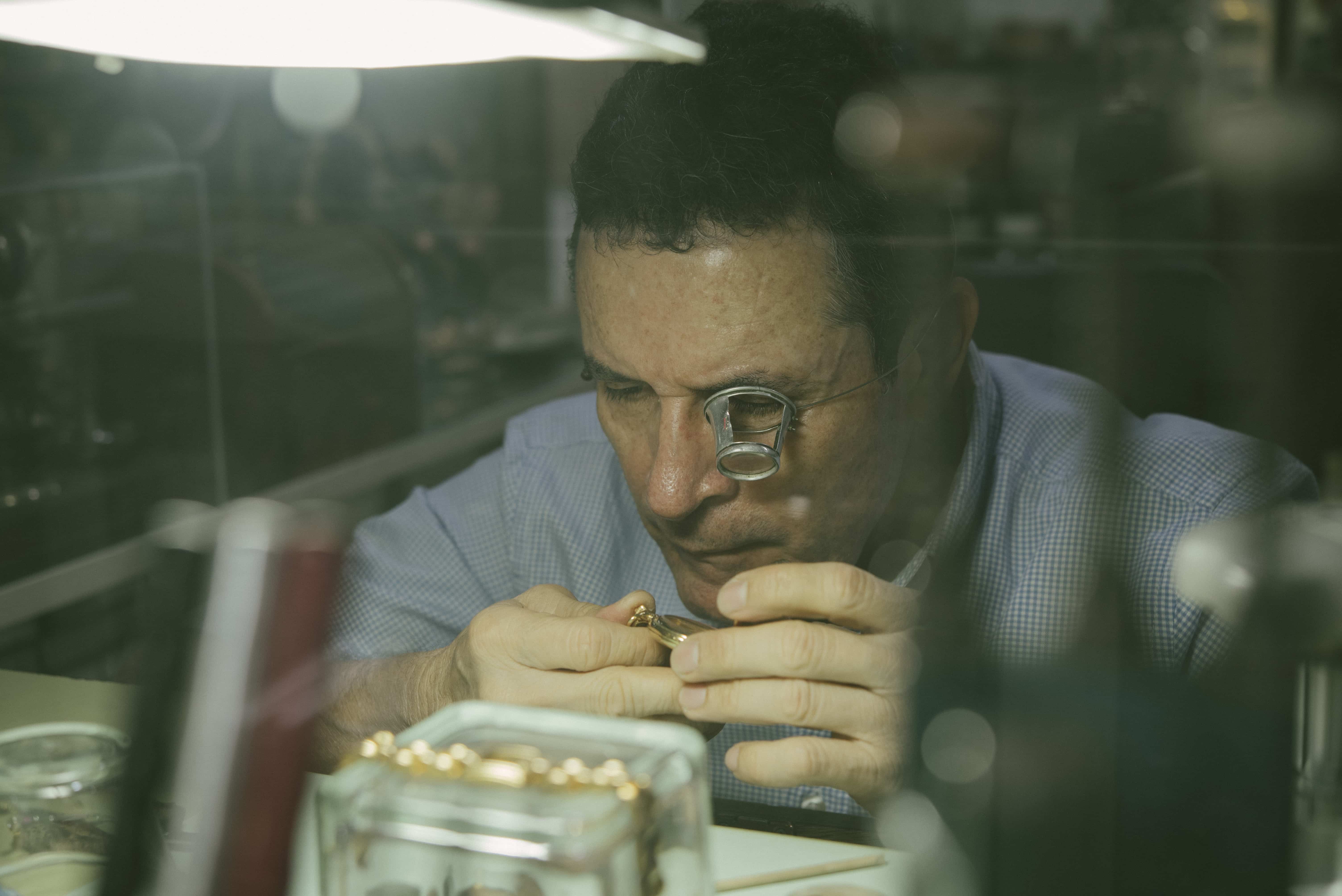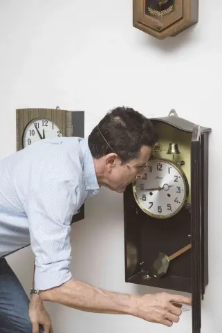 Su taller actual es un testimonio vivo de décadas dedicadas al oficio. Las paredes están adornadas con relojes de diferentes épocas, y bajo su lupa -la misma que ha usado desde sus inicios- examina con precisión milimétrica los intrincados mecanismos que dan vida a estas máquinas del tiempo. "Para mí es apasionante escucharlos todos al mismo tiempo", dice sobre el concierto que sus relojes ofrecen cada hora.