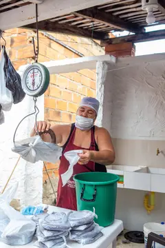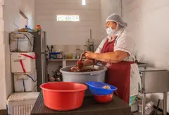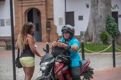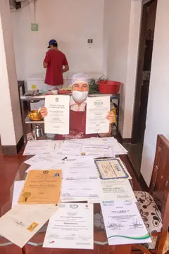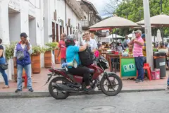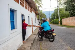 Entonces decidí acompañarla a la venta. Y ahí estábamos: en la parte delantera de la moto, la morcilla; y atrás, yo, aferrado a doña Fany. Recibíamos llamadas, íbamos y volvíamos, y entre una y otra entrega cruzamos Santa Fe de Antioquia unas cuatro veces. Ella sueña con no tener que salir tanto en la moto, pero para vender su producto en las tiendas de cadena necesita sacar documentos y licencias.