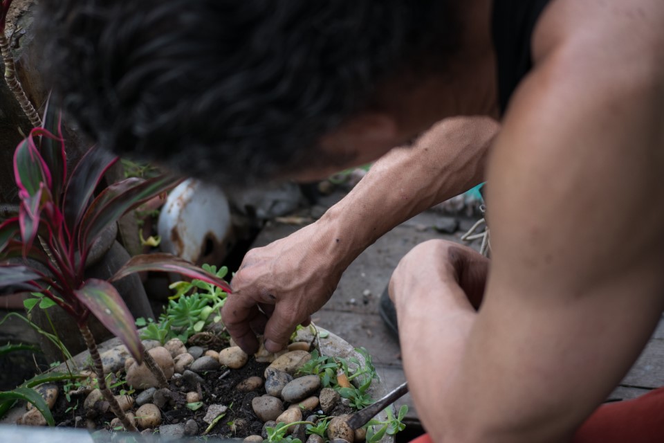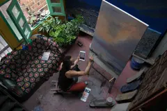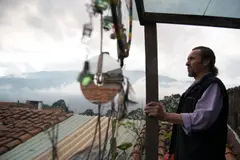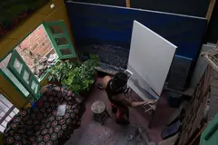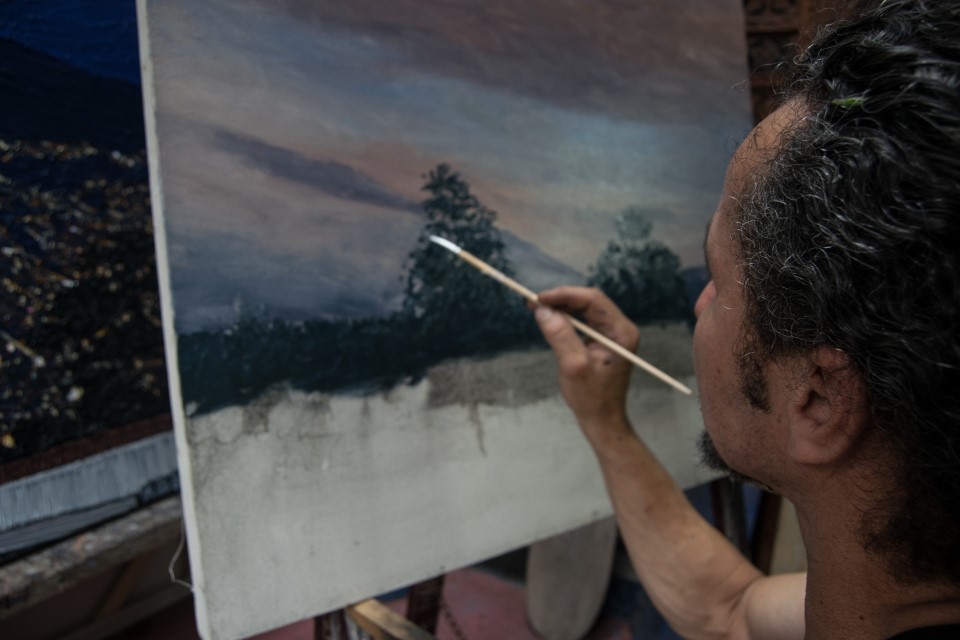 Recuerdo el taller de Fredy con la misma sensación de subir a una torre o un faro: ese momento de plenitud cuando desde lo alto se puede observar el paisaje en 360 grados. Su taller es una casa de varios niveles en Pedregal, barrio formado en la montaña de la zona noroccidental de Medellín, con una vista privilegiada.