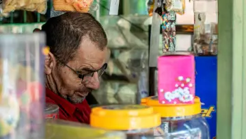 Es corto de vista, pero en su chaza es capaz de encontrar hasta el mecato más pequeño. Como si los dulces que vende fueran una extensión de su propio cuerpo, puede alcanzarlos aún en la oscuridad que le genera la ausencia de visión. Y aunque dice no ser estudiado, sabe que en el campo cogió cierto sentido. Pícaro, memorioso y avezado para las ventas.