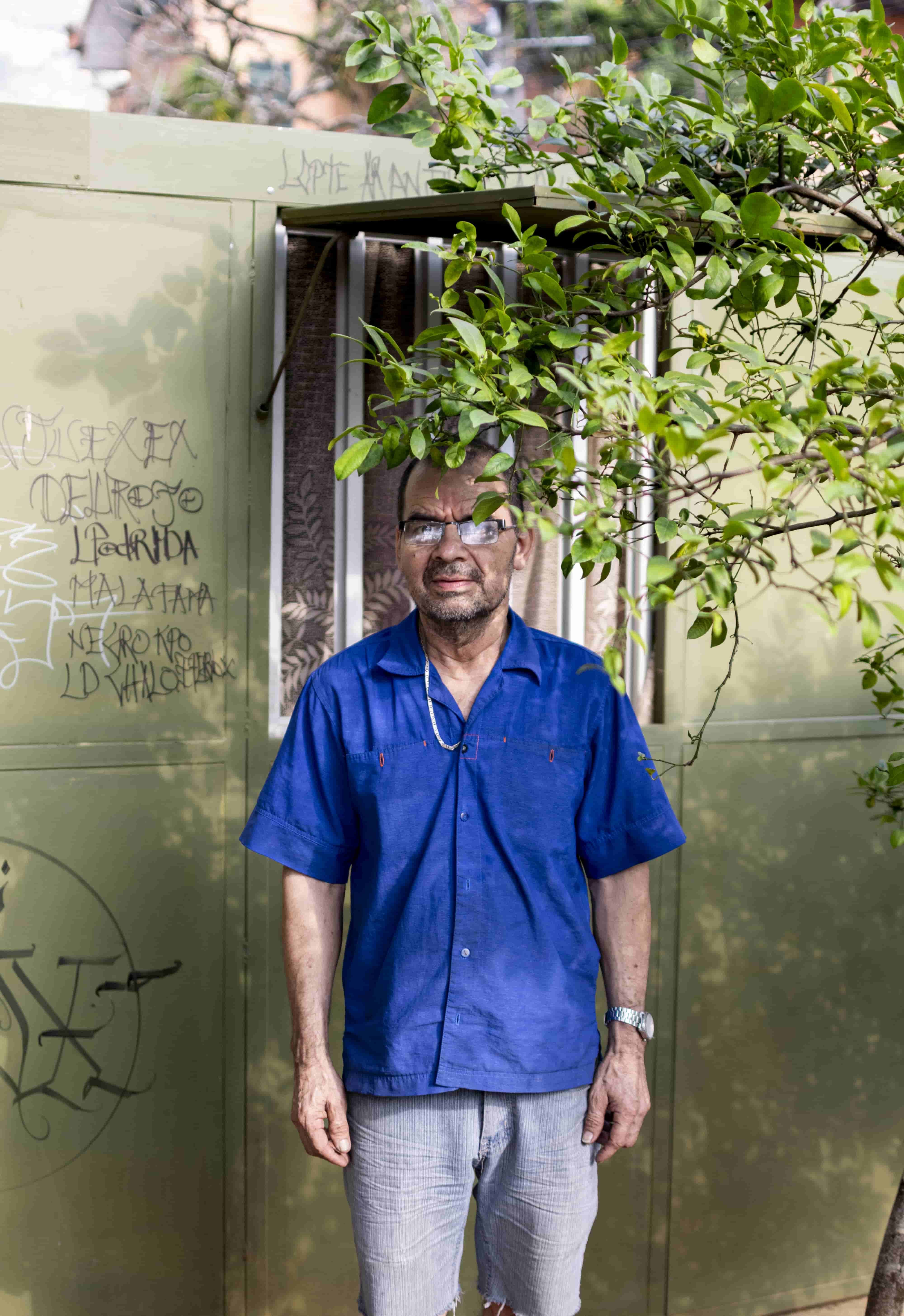 En los momentos más arduos hace uso de un sistema que tiene desde tiempos antiguos: señala con el índice al cielo y llama a Dios. Así hizo cuando lo dejó la mamá de sus hijos, así hizo cuando lo atropelló una moto dejándolo casi muerto y así hace muchas veces mientras cuenta su historia.