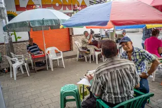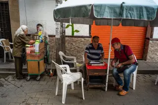 La administración municipal los reubicó en un callejón donde se acomodan los últimos personajes de este oficio. Tal vez hace muchos muchos años fueron una pandilla de risas, pero ya solo quedan unos cuatro o cinco viejos amigos que ahora se sientan en una esquina abarrotada y transitada por vendedores ambulantes, buses, peatones y perros callejeros a una cuadra del parque de Bello.