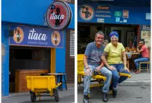 Ítaca -como la isla del mar Jónico (patria de Odiseo) o la siempre lejana de Cavafis- se llama el restaurante de esta pareja, ubicado en la carrera Córdova entre Perú y Caracas. Desde allí, cargan una carreta amarilla desvencijada con desayunos o almuerzos y emprenden el viaje.