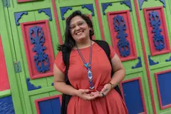 Laura Saldarriaga es una mujer prolífica que explora géneros narrativos como el cuento y la poesía. Es psicóloga y reivindica la escritura como una herramienta terapéutica y un medio para redescubrirse a uno mismo y retornar a lo que, según ella, son los valores esenciales.