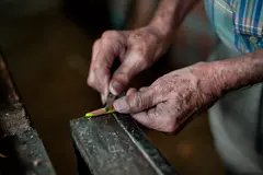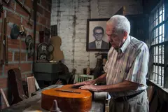 Él repara y crea instrumentos musicales, algo para lo que se necesita habilidad en las manos, buen oído, pasión por la música y, sobre todo, una paciencia parecida a la testarudez. Ganas de no rendirse nunca, porque si algo se daña, se quiebra, se pela o se rompe, puede arreglarse o, al menos, se intenta reparar con pasión, con ingenio, con innovación, con estética.