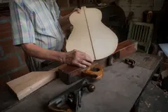 El cartel de su negocio dice: Ebanistería Julio y León Vargas, teléfono 42251. Además de León y su papá, en el letrero también podrían estar los nombres de sus hijos, Sergio y Mauricio, quienes lo acompañan a diario, cada uno con su especialidad, con sus herramientas, con lo mejor que León supo transmitirles: respeto por cada instrumento creado o reparado, para que así el valor de una guitarra no sea el que tiene en un container traído de China sino el que dicta el artista, el lutier, el que puso su conocimiento y su trabajo para encontrar el equilibrio entre la notas agudas y las notas graves, para que la música salga nítida y no opaca, o ahogada, o turbia.