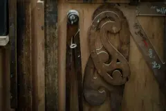Quiere mostrarme algo y, cuando va a buscarlo, preciso se le cae una cajita de las manos. Le cuesta un poco agacharse y yo le digo que tranquilo, que yo lo recojo, porque sé que buscar cincuenta puntillas en un piso lleno de aserrín no es algo sencillo para sus rodillas. El tiempo ha pasado, él lo sabe, aunque su vista está intacta y en un metro puede ver cada uno de los milímetros. Entonces me agacho a recoger para que León sigua buscando lo que quiere mostrarme. Aparece con unas herramientas antiguas con las que aspira hacer un museo.