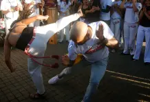 En el siglo XVI, Portugal traía cada año a América cerca de 12 mil personas desde Mozambique, Angola y el Congo para convertirlos en esclavos al servicio de los cultivos de caña de azúcar y algodón en Brasil. Los compañeros de barco de esa travesía infernal se llamaron malungos, o hermanos para la vida, y en medio de las peores condiciones estos hombres y mujeres comenzaron a practicar en secreto una forma de entrenamiento físico con características de danza acompañada de música y cantos. Esta disciplina se transmitió por generaciones en las zonas más marginales de Brasil, hasta que en la década de 1930 salió de las favelas, se convirtió en deporte nacional y comenzó su expansión por el mundo.