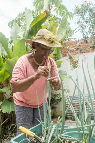 Ella viaja con frecuencia y lleva en su bolso —como Félix el gato— todo lo que necesita. Es una sabia campesina que tiene a su disposición toda la naturaleza que necesita, y como buena madre tiene una inmensa capacidad de tener siempre una solución.