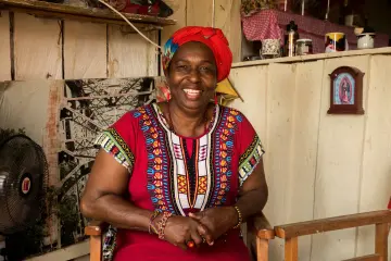 María Cristina es una mujer coleccionable. Sabe que su color de piel es diferente al de muchos, como los ojos, o la altura, el cabello o cualquier cosa, pero sabe también, y muy bien, que ella es igual a todos, por eso siempre trata a todo el mundo con respeto, y como si fuera alguien rubio, o de ojos claros. Presume sus raíces por donde quiera que va. Posee toda clase de balacas, cerámica, collares, sombreros, recuerdos, entre muchas tantas cosas de colores vivos y exóticos en los lugares donde está o a donde va.