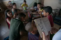 En el barrio Santander, en un sector de callejones llamado Los Ranchos, Raquel se reúne con los niños del lugar a leer, a jugar y a crear historias. Allí, y durante cuatro horas, ella los transporta a lugares donde la vida es plena, tranquila y sin violencia.