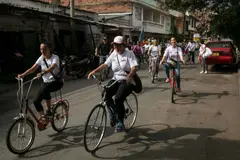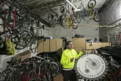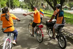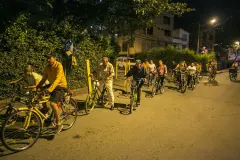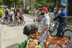 A menudo se une con Álvaro Ospina, quien tiene un parqueadero convertido en museo de bicicletas con más de 900 piezas que ha ido coleccionado durante años. Cada martes en la noche, Álvaro presta sus bicicletas a los que quieran salir con él por las calles de Bello. La gente llega del trabajo, se monta en las bicicletas, conversa y se relaja antes de llegar a su casa. Cada vez se suma más gente y, sin duda, entre Sebastián y él conseguirán que algún día Bello tenga ciclovías adecuadas.
