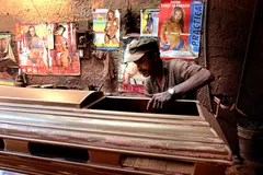 La Quinceañera, la Chévere, la Burbuja, la Vitrina, la Piedad, la Extralarga y El Copón son algunos de los cajones que Bibiano ha construido a lo largo de su vida. «Me jubilé trabajando en esto y ahora vivo con mi esposa Rocío y mi hija Margarita, quien desde hace unos tres o cuatro años se dedica a esto. Yo en cualquier momento me voy y esto es lo que le va a quedar para acabar de levantar a mi nieto. Ella atiende a los clientes. A mí ya ni me llaman. Ella compra todos los materiales como la pana, la tablex, la espuma, las bisagras, la tela». Y añade: