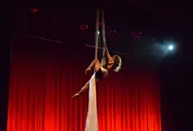 Del techo comenzaron a caer unas telas blancas y livianas. Una mujer apareció en el escenario, abrazó las telas y empezó a danzar por los aires. La música se volvió más tenue y el público maravillado parecía volar con ella. El espectáculo llegó a su fin y los aplausos inundaron la pequeña carpa, uno detrás del otro. Mi abuela me tomó de la mano para salir, mientras yo me imaginaba a mí misma pasando con un traje de hada por una cuerda suspendida.