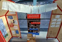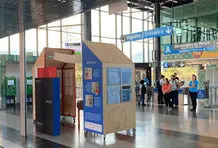 Todos estos distintos formatos quedaron resguardados en un mueble que parece una casita, un edificio, un buzón gigante, en últimas, un contenedor de historias, pensamientos, emociones, palabras, imágenes y sonidos.